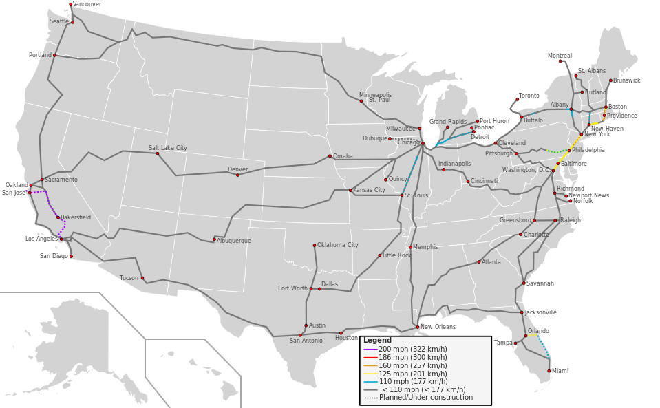 Amtrak äger stora delar av spårnätet i USA. Flera av de mest lönsamma sträckorna, Pacific Coast Railroad i California och Northeast Corridor på östkusten är två exempel, ingår i det spårnät som ägs av Amtrak.